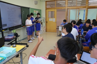 9月19日(金)の3学年の総合的な学習の時間で、「いいムラづくりプロジェクト」の中間発表会が行われました。グループごとに、東海村がより良いムラになるような企画を考え、発表しました。東海村役場の地域戦略課の方をお招きし、アドバイスをいただきました。いただいたお話をもとに、企画を練り上げていきます。 |