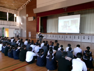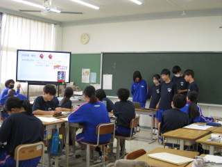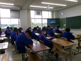 10/10(金)前期が終了しました。担任の先生から一人ひとりに、これまでの頑張りについて丁寧に話をもらいながら、通知表が渡されました。朝には、後期学級委員や生徒会本部役員の任命式も行われました。また、一足早く始まった後期委員会活動では、生活委員会が村の社会福祉協議会の方々を招いて「福祉の話」を聞き、これからの活動に見通しをもつことができました。 |