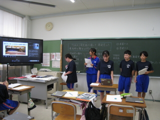 10月1日と2日の2日間、1年生が総合的な学習の時間にTOKAI発見旅を通して再発見した東海村の魅力を発表しました。発表会には東海村役場地域戦略課の方もいらっしゃり、どんな魅力を発見してきたのか参観してくださいました。 |