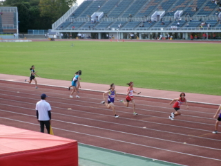 本日(10/2)から県新人大会陸上競技が始まりました。出場した生徒は精一杯頑張りました。結果、明日の男子100mで決勝に、男子4×100mリレーでTR(トライアルレース9位〜16位)に進むことができました。応援の生徒も大会運営をてきぱきと行いました。 |