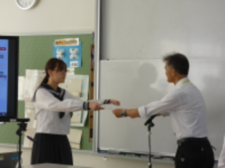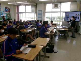 9/10(水)1年生では、スクールロイヤーの2人の先生をゲストに迎え、SNSの使い方や友達との関わり方について、日常生活の具体的な場面を例に挙げて考えました。授業を通して、人権の大切さを改めて理解し、お互いの安心・自信・自由を尊重し守り合う生活の大切さを学びました。 |