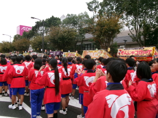 25日(土)東海まつりが行われ、本校の1年生が東海音頭のパレードに参加しました。心配された天候も、踊り始める前には雨も上がり、良いコンディションの中で踊りを披露することができました。総合的な学習の時間で学んできた東海村の学習の一環として、生徒たち練習から一生懸命取り組みました。 |