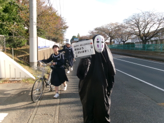 31日(金)ハロウィンにちなんで、生徒会発案の「仮装してのあいさつ運動」を2日間行いました。先生たちや教育実習生も一緒に企画を盛り上げました。いろいろなアイディアを実践しながら、あいさつの活性化に努めています。 |