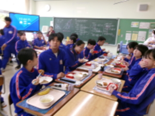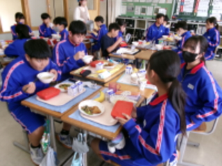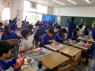 今日(11/6)の献立は、ご飯・牛乳・大鶏排(ダージーパイ)・炒青菜(チャオチンツァイ)・蘿蔔湯(ルォボータン)・台湾バナナです。台湾バナナは争奪戦になるぐらい人気で、すごく甘いと驚きながらおいしく食べていました。台湾の食文化に触れられた給食時間になりました。 |