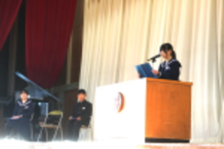 2年生が、東海中と合同で、「立志式」を行いました。文化センターを会場に、東海村出身の方による講演と、各校からの“私たちのメッセージ”の発表を行いました。 |