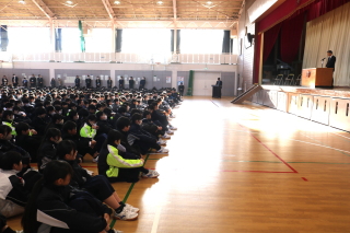 8日(木)、今日から3学期が始まりました。始業式では、各学年の代表生徒3名が新年・新学期に向けての抱負を力強く述べました。また、本日から各教科の授業や給食も始まり、いつもの学校生活がスタートしました。 |