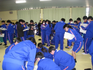 30日(金)、令和8年度入学生の保護者に対する説明会が行われました。たくさんの保護者の方に南中について知っていただくことができました。放課後、来月7日(土)に行われるいばらきっ子郷土検定郷土検定県大会に出場する2年生の代表メンバーが練習に励んでいます。教員が出題する難問題に、早押しボタンを用いて答えていました。 |