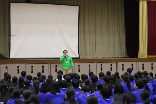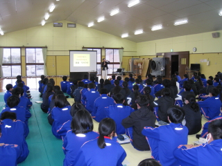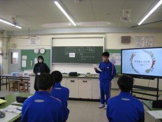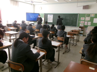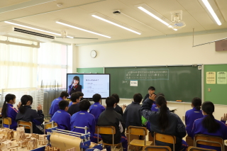 第1回目の「働く人に学ぶ会」が本日(1/21)行われました。「きっかけと挑戦で未来をつくる」ために、どのような心構えが大切なのかを、講師の先生から1年生が学びました。講師の先生の青年海外協力隊としてセネガルで教育活動を行った体験を聞き、どんなに困難な状況であっても、自分の努力と周囲の協力によって道が開かれると感じていました。また、「過去の自分を振り返ることが未来の自分をつくるきっかけになる」との言葉に、自分を見つめることの大切さを感じました。この会は第3回目まで行われ、次回はいろいろな職業の方から話を聞きます。 |