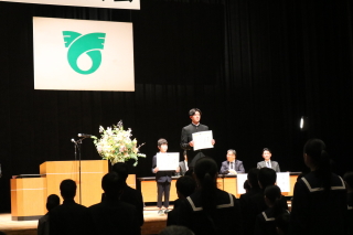 13日(金)東海村教育振興大会が東海文化センターで行われました。本校から、スポーツや文化・芸術部門で活躍したたくさんの生徒が参加しました。また、中学生の部を代表して、本校の3年生が登壇し表彰されました。式の終了後、JWAY(ケーブルテレビ)のインタビューを受けました。 |